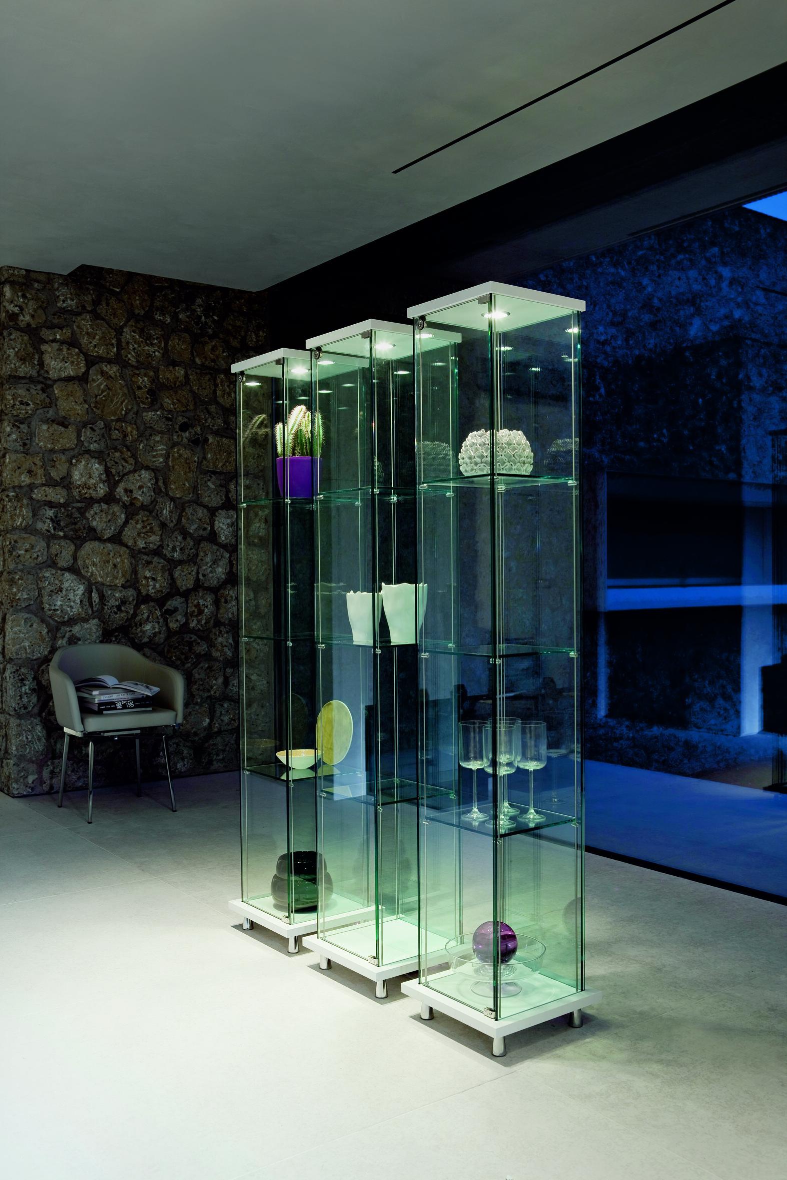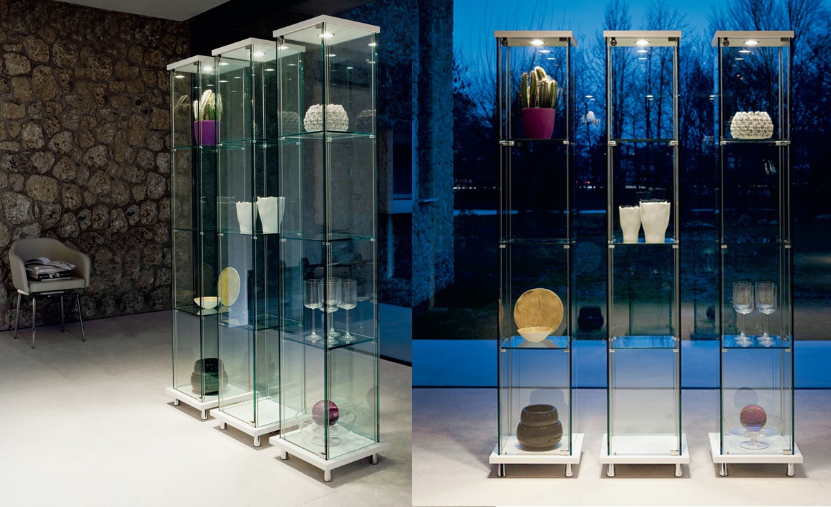 Showcase Mini Decor from the Italian manufacturer Cattelan Italia. Showcase made of glass, and the base of the natural wood. Legs are made from chrome steel. The color of this model showcases white.