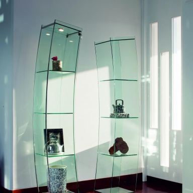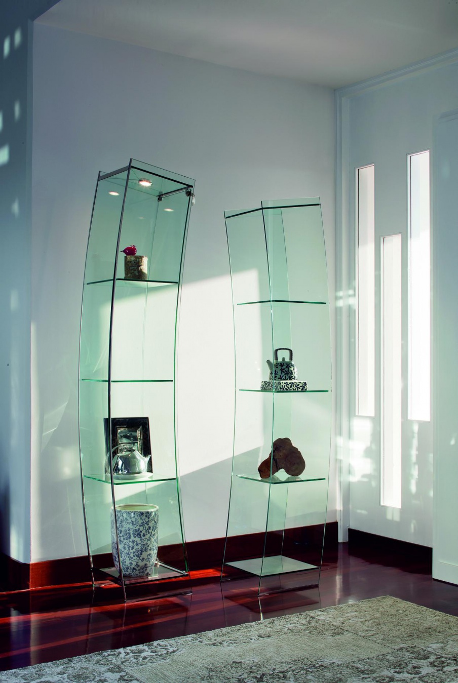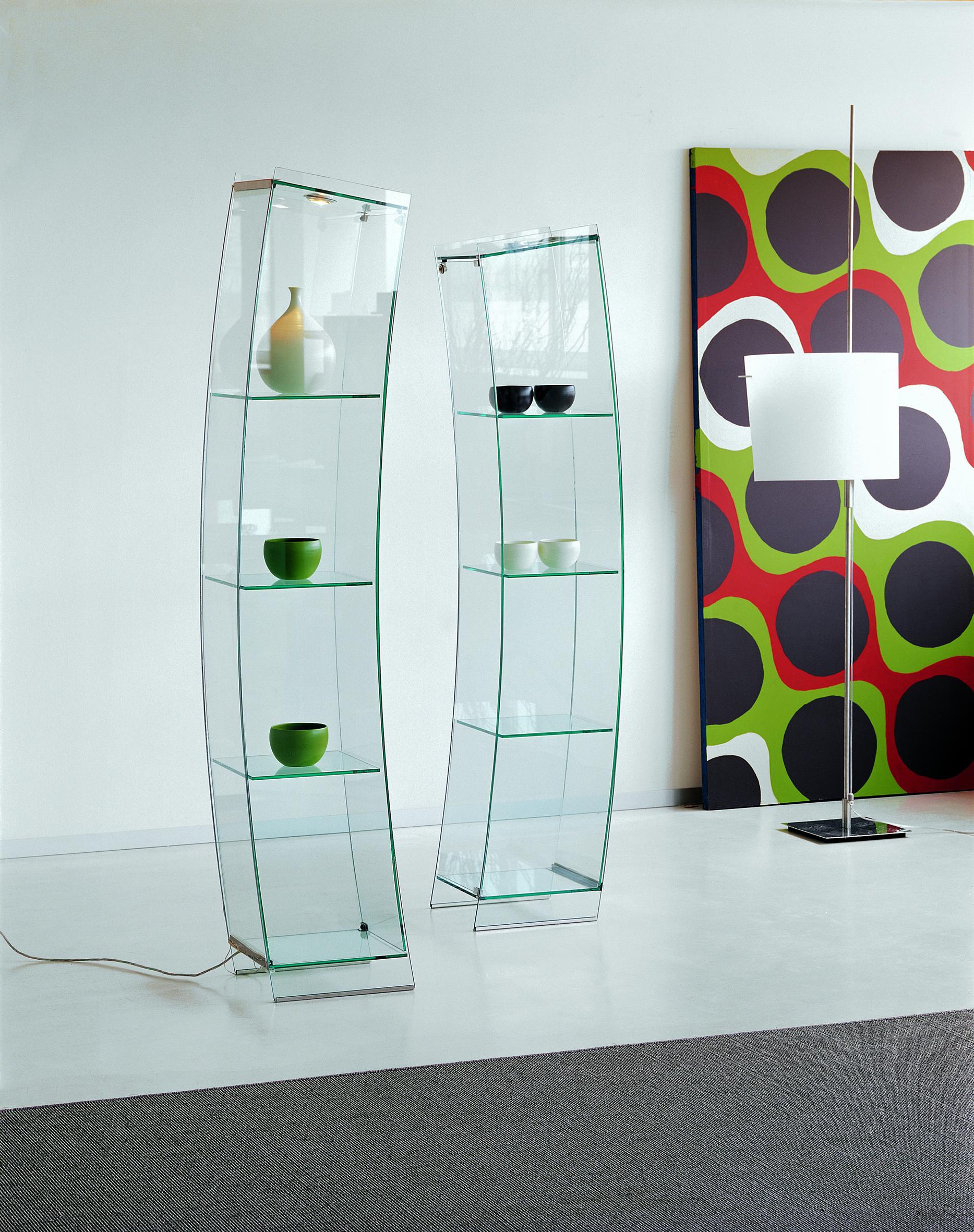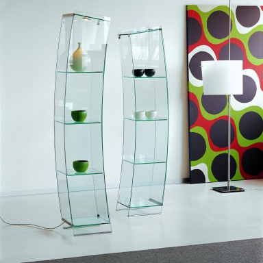 Showcase Wind from the Italian manufacturer Cattelan Italia. Showcase made of glass, and the trim is made of steel. The color of this model showcases transparent.