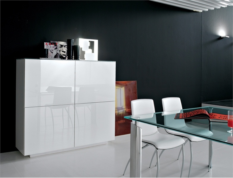 Futura stand from Italian manufacturer Cattelan Italia. The frame of the dresser is made of solid wood, and doors made of aluminum and glass. Well as glass made top. The color of this model of chest of drawers - black.