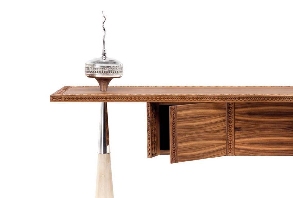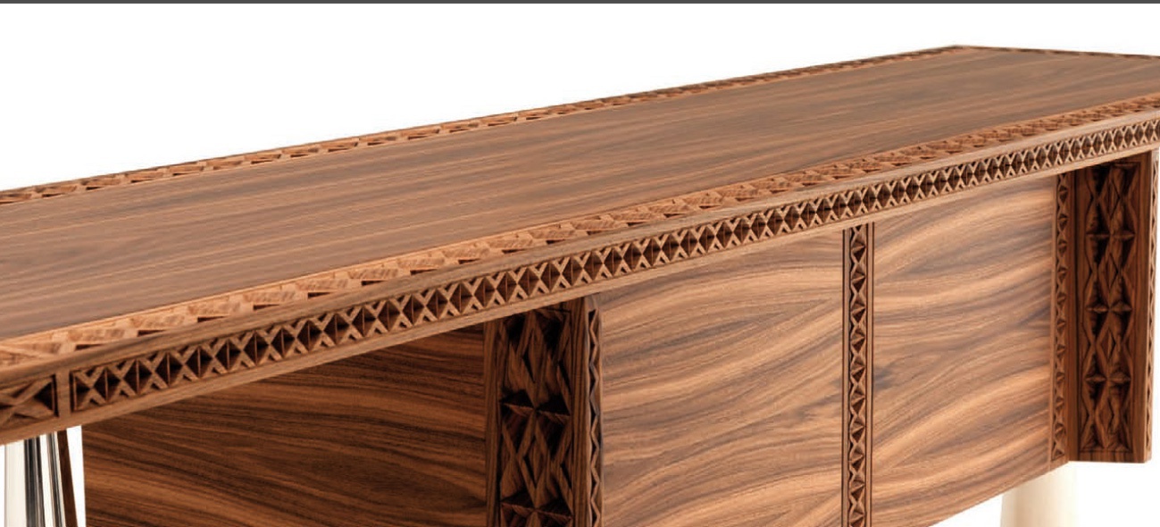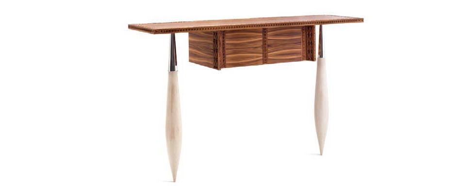 Imrat console from the Italian manufacturer Ceccotti. Model with body made of rosewood or mahogany with decorative carvings. Legs made of curly maple. Make an element of luxury to Your interior.