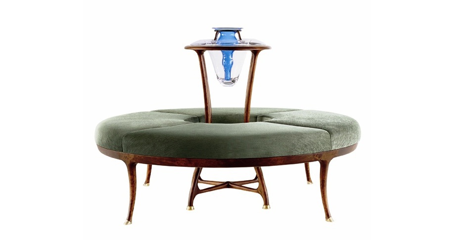 The Large flower sofa from Italian manufacturer Ceccotti. Island sofa round shape, with a frame made of cherry wood, upholstery textiles and decorations of stained glass. The model designer.
