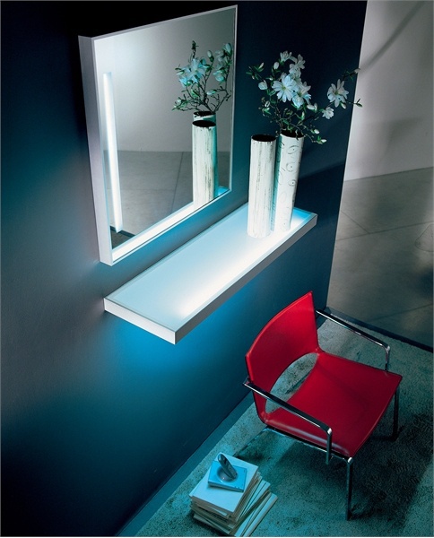 Mirage regiment from the Italian manufacturer Cattelan Italia. Shelf is made of glass and the frame is made of aluminum. The color of this model, the shelves are transparent.