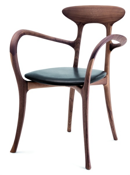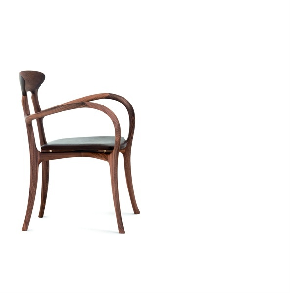 Chair Ma belle con braccioli from the Italian manufacturer Ceccotti. The frame is made from cherry wood, oak or American walnut. The seat is upholstered in leather or textiles from a range of companies. Colours in stock. Design model for the modern interior.