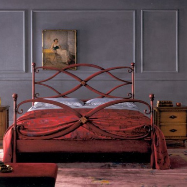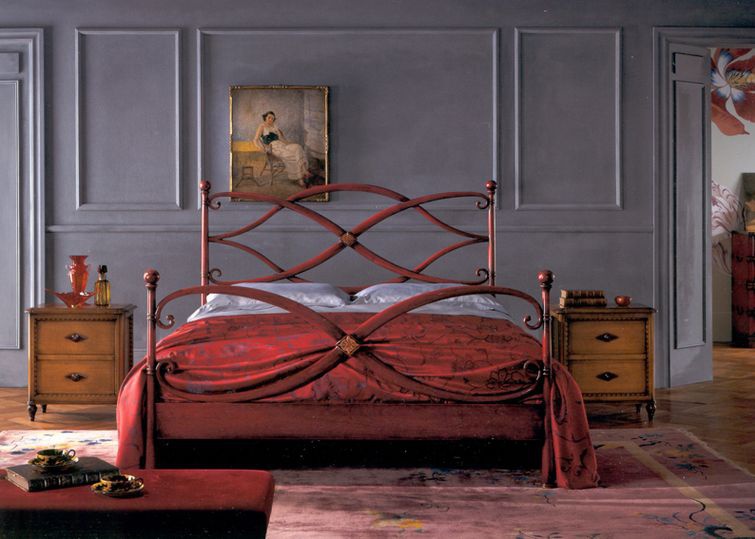 Double bed from Italian manufacturer Pregno. Model with high headboard made of solid wood. Colours in stock.