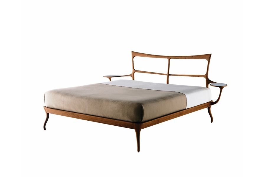 Bed T. D. L. V. from the Italian manufacturer Ceccotti. Double bed with fitted bedside tables. Model design, executed in natural wood color.