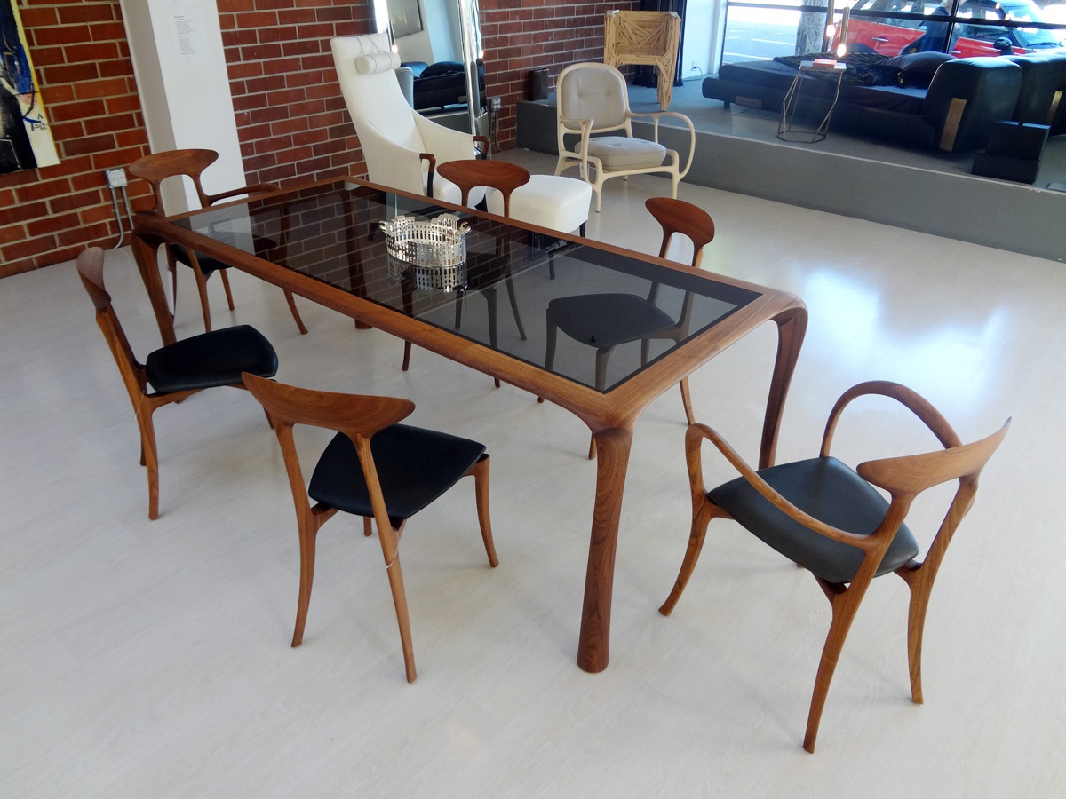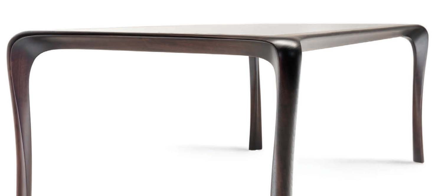 Whity dining table Italian manufacturer Ceccotti. The frame is made from cherry wood, American walnut or oak. Top is glass or wood. Model on curved legs. Design model for the modern interior. Colours in stock.
