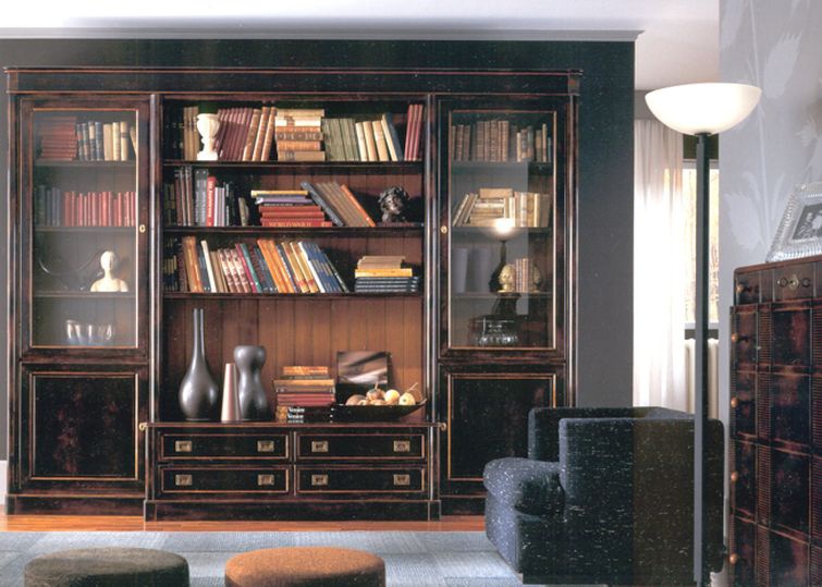 Bookshelf from Italian manufacturer Pregno. The model is made from solid wood and varnished, glazed doors. Roomy drawers for storage and shelves for books beckon their convenience and compactness. Perfect for home library. Color of Cabinet from the manufacturer in natural color of wood.