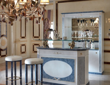 In addition to the collection of sideboards, dressers and chairs Turri, elegant dining tables, chairs and bar counters. Antique lightness, airiness and tenderness to the pieces of furniture provides glass and intricate hand decoration. Plenty of mirrors and gilding create a sense of celebration, pleasure and exquisite enjoyment. Durable frame made of natural wood masquerades as marble and granite, a skilled makeup shades which provide gilded ochre, light powdery notes and matte retouching.