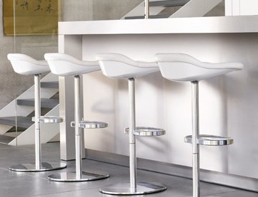 For sleek high-tech will be a great solution to the German bar furniture with metal supports. The combination of chrome legs with leather seats has a special glamor. The products can be supplemented with high backrest, height adjustment.