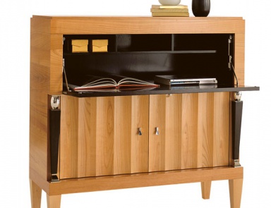 The furniture is made of solid alder and oak and finished with rich cherry. Upholstered beds are made of expensive textiles and leather padding. Dressers, console and buffets adorned with decorative wave-shaped doors. Tables amazing grace legs as thin straight and curved.