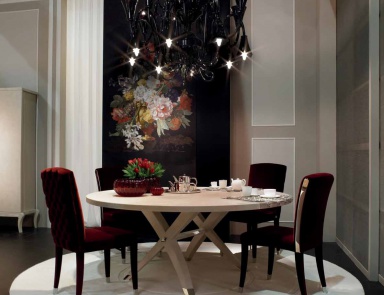 Truly worthy of attention round Italian dining tables handmade. Each model of them represents the finest work of thread, for example, the base of the dining table. Well made and sturdy table top made from valuable breeds of wood completes the image of the ideal of streamlining and perfection of the surface. As for trendy, but not inferior in quality working surfaces made of solid wood – plastic round Italian dining tables. They accentuate the sophisticated kitchen design in the style of minimalism, hi-tech and other modern styles, but will keep comfort and coziness.