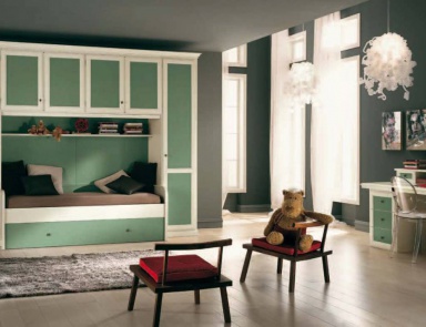 When creating projects of children's bedroom furniture of wood accounted for and functionality of all parts and components. In different models, dimensions, designs fully comply with the physical parameters of child development and their growth. In this furniture children can independently get from the top shelves and post them on their clothes and toys. This same requirement is met for the parameters of the height of the handles in the cabinets. Our children's bedroom set made of wood will be an excellent option for interior design Your kid's room.