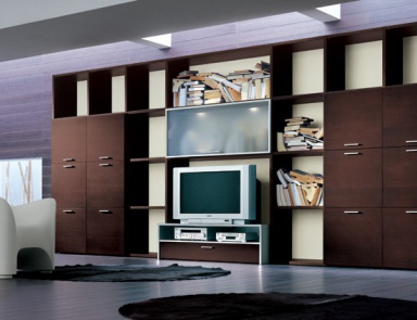 In the product catalog Mobiltrevi includes both headsetand individual pieces of furniture that you can build to your liking. It's a chest of drawers, showcases, furniture for TV, bookcase and wardrobe cabinets, modular systems and wall (for books, with place for TV).