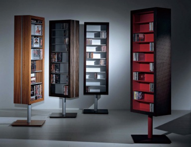 Manufactured today by many famous European manufacturers of CD racks are the descendants of simple wall fixtures – modular structures in which we placed all available disks. As they accumulate, modules can be added. Later they were placed in isolation, strengthening on vertical support: so they became a separate piece of furniture, self-contained and expressive. Thus, CD rack under disks is a number of crevices of shelves (often with side constraints) that are installed at a slight angle relative to the horizon and is attached to vertical leg-reliance. Due to special separators, placed in them the drives are not in contact with each other, and to choose them very convenient because all the information is placed on the side faces of their plastic boxes, easy to read.