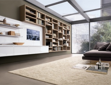 For the shiny lacquered surface of the fa?ade is easy to solve the problem of storage. Robust shelves made of aluminium and solid poplar will withstand the weight of a massive home library. Open shelves with stylish accessories will add a strong interior working area. No matter in what style the interior of the home, the buyer will find in the collection System MisuraEmme Crossing furniture to your taste and will be sure in the highest quality.