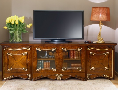 Select a dresser for your TV is not an easy task as it might seem at first glance. It is important that the model did not distract attention, as it is not a key interior subject, however, product should be "highlight". As a rule, wooden TV stand is selected for a specific interior, it must be consistent in style with other pieces of furniture. Classic room harmoniously blends an elegant model with carved elements, the atmosphere of a country style will emphasize concise and the product is deliberately rough, the interior in the art Deco style will complement wooden TV stand unusual shapes with creative elements, etc. In the collections of well-known manufacturers of luxury furniture presents the model for every taste, the main thing is to avoid eclecticism in the interior, because when all the pieces of furniture are designed in different styles, it creates friction.